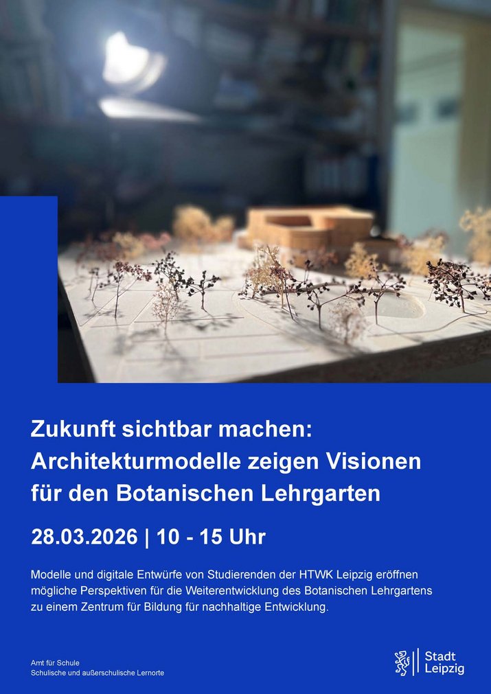 Im Mittelpunkt steht die erstmalige Präsentation studentischer Entwürfe für die Weiterentwicklung des Botanischen Lehrgartens zu einem Zentrum für Bildung für nachhaltige Entwicklung. Studierende des Masterstudiengangs Architektur der HTWK Leipzig haben im Rahmen einer Semesterarbeit neun Architekturmodelle zur möglichen Weiterentwicklung des Standorts entwickelt und ergänzende digitale Materialien erarbeitet. Auf dieser Grundlage entstanden StoryMaps, die die Entwürfe visuell und inhaltlich vertiefen. In der Ausstellung werden die Modelle und digitalen Inhalte erstmals gemeinsam vor Ort präsentiert.