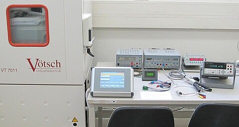 - Temperaturprüfschrank mit Kabeldurchführung, Temperaturbereich -70 bis +180 °C