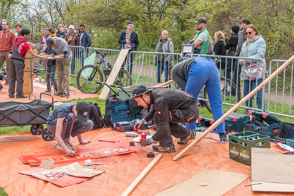 Insgesamt hatten sich 21 Teams beim 28. Seifenkistenrennen beteiligt, das vom soziokulturellen Zentrum „Die naTo“ e.V. seit 1992 unter dem Titel „Prix de Tacot“ alljährlich am ersten Maisonntag in der Südvorstadt ausgerichtet wird. Längst hat es den Status eines Volksfestes erreicht - mit Tausenden Zuschauern, die den tollkühnen Fahrerinnen und Fahrer an der Strecke zujubeln.